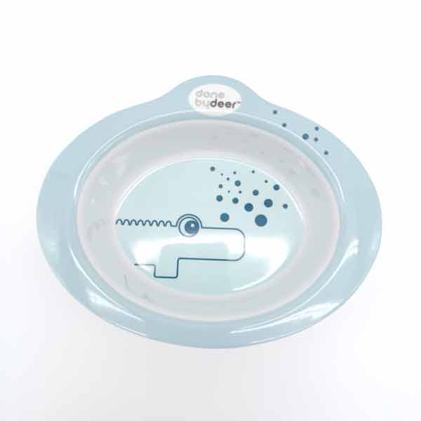 -Un Bol Done By Deer, cuenco azul es ideal para las comidas de los más peques de la casa: Papillas, purés, desayunos y meriendas. Ha sido fabricado 100% en melamina y sin formaldehído.